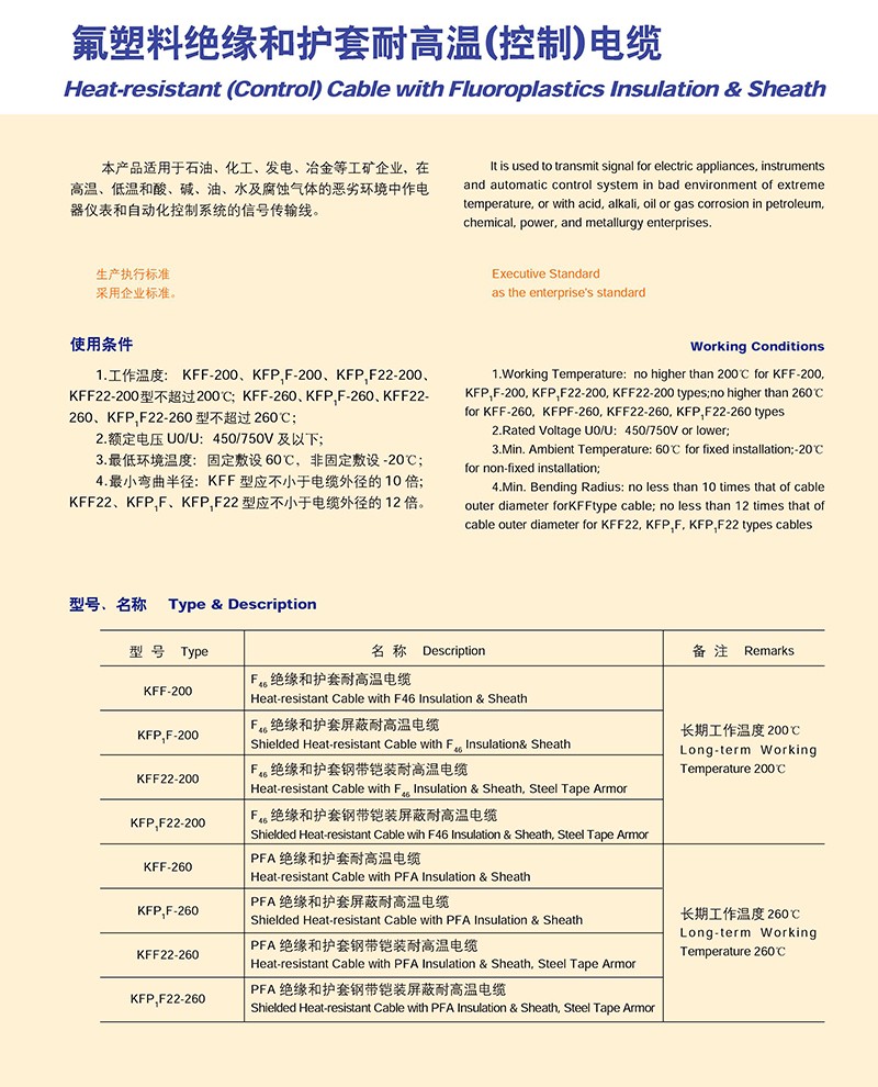 氟塑料絕緣聚氯乙烯護(hù)套耐高溫控制電纜的產(chǎn)品詳細(xì)介紹:
