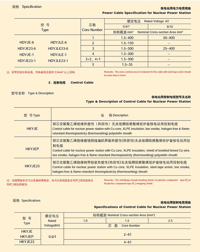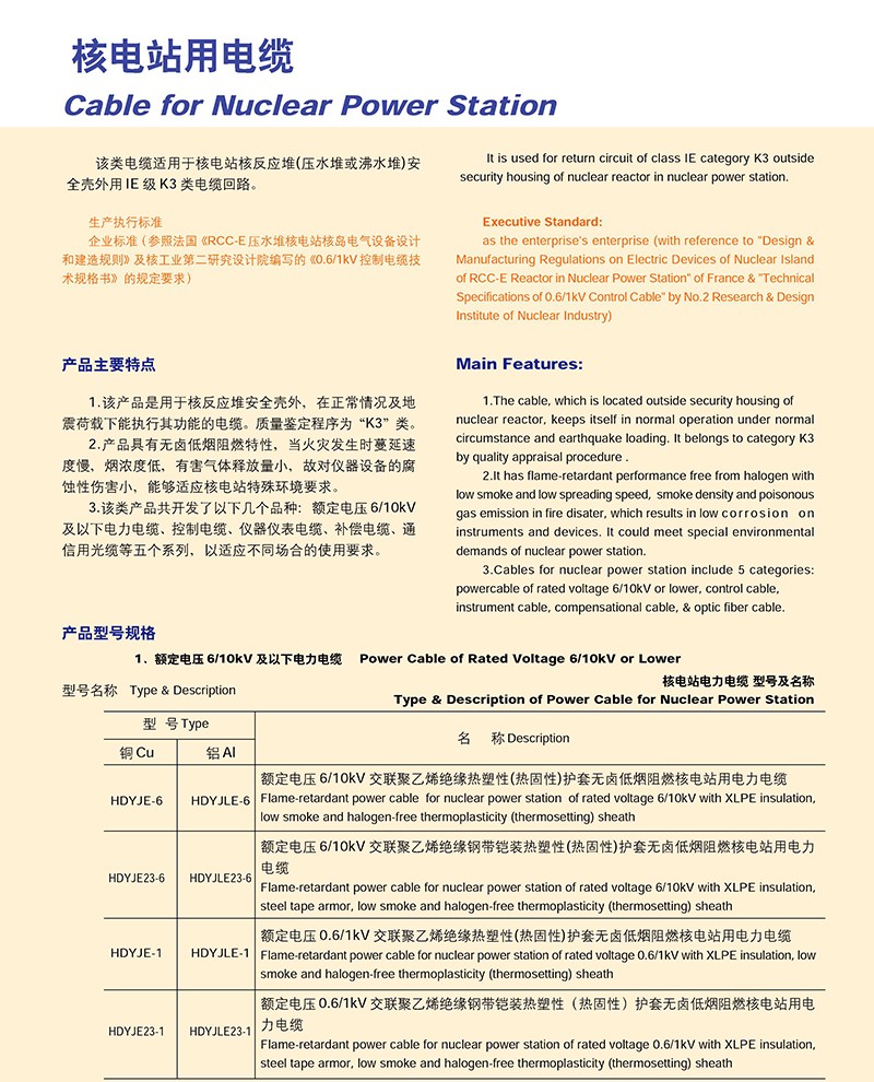 核電站用電纜的產(chǎn)品詳細介紹: